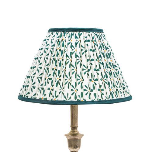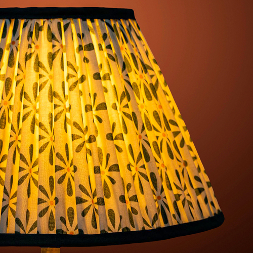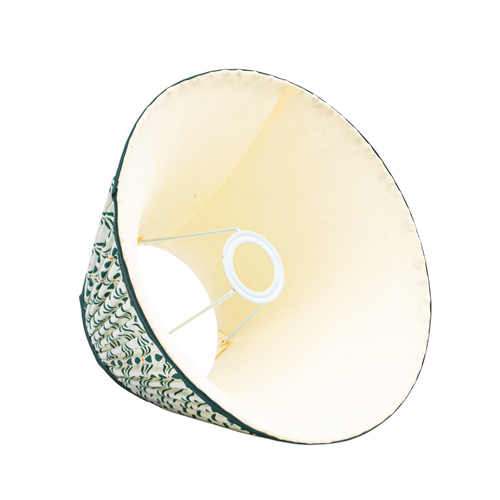 A softback premium printed cotton shade handmade by incredibly skilled craftswoman. This is a 30cm size (bottom diameter) lampshade which is designed to work with a British (B22) or European (E27/E14) bulb holder. We also provide a reducer ring that allows shades to sit comfortably on a B22 holder. If it is E27/E14, simply push out the reducer. Our shades are completely handmade and yet of top quality, eco-friendly, and of course 100% made in India. Dimensions (cms) : Top - 14, Bottom- 30, Height - 18.2