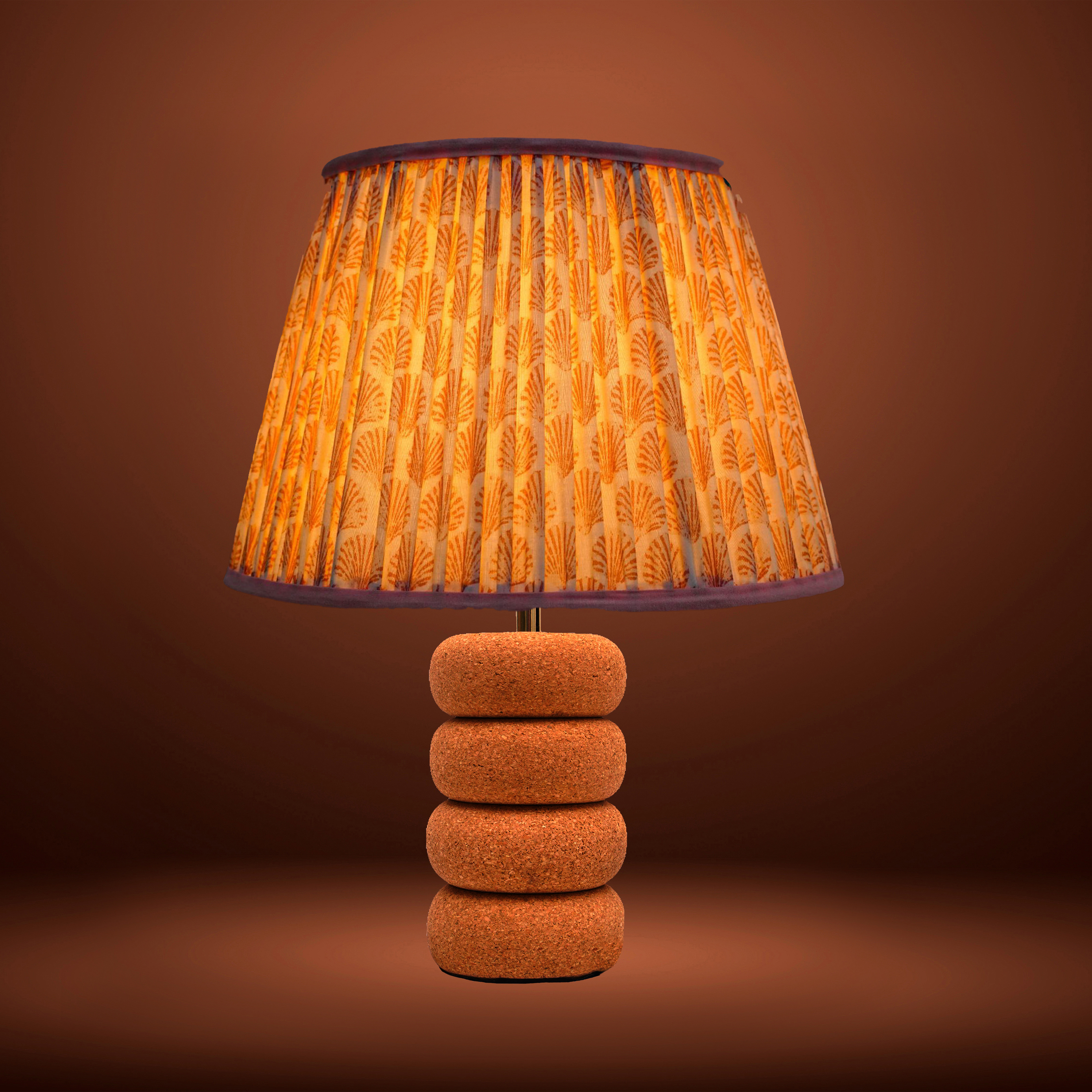 Handcrafted from natural cork, this table lamp features an elegant oval stepped base, creating a sculptural, layered silhouette. Designed with sustainable luxury in mind, it adds a refined glow and contemporary elegance to any space.