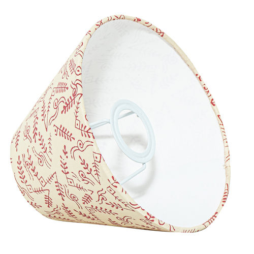 A hardback premium block printed paper shade handmade by incredibly skilled craftswoman. This is a 20cm size (bottom diameter) lampshade which is designed to work with a British (B22) or European (E27/E14) bulb holder. We also provide a reducer ring that allows shades to sit comfortably on a B22 holder. If it is E27/E14, simply push out the reducer. This lampshade can be used on top of table lamps or floor lamps. Our shades are completely handmade and yet of top quality, eco-friendly, and of course 100% made in India. Dimensions (cms) : Top - 10, Bottom- 20, Height - 13