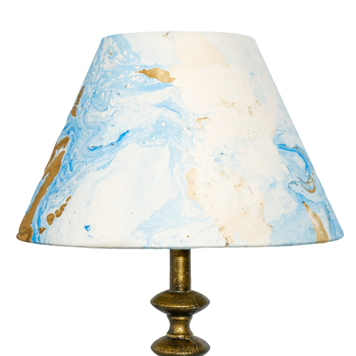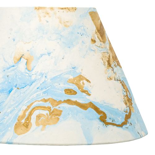 A hardback premium marble paper shade handmade by incredibly skilled craftswoman. This is a 30cm size (bottom diameter) lampshade which is designed to work with a British (B22) or European (E27/E14) bulb holder. We also provide a reducer ring that allows shades to sit comfortably on a B22 holder. If it is E27/E14, simply push out the reducer. This lampshade can be used as pendant/hanging or on top of table lamps/floor lamps. Our shades are completely handmade and yet of top quality, eco-friendly, and of course 100% made in India. Dimensions (cms) : Top - 14, Bottom- 30, Height - 18.2