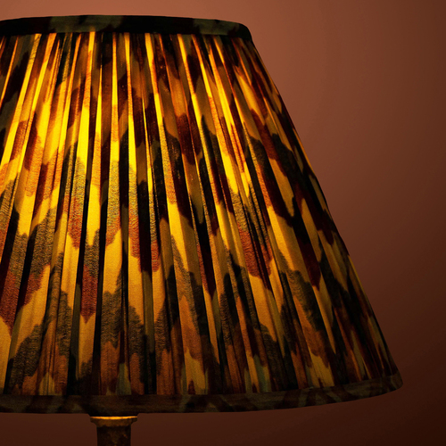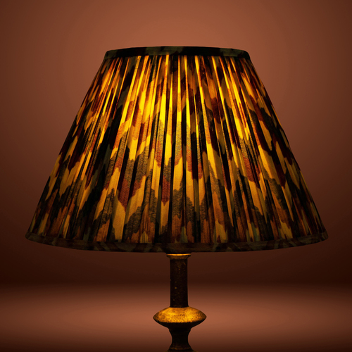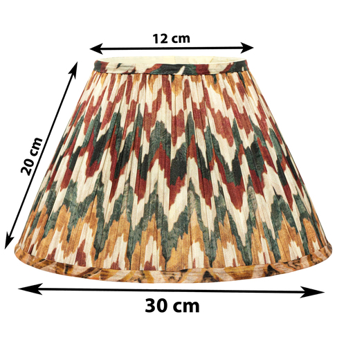 A softback premium printed cotton shade handmade by incredibly skilled craftswoman. This is a 30cm size (bottom diameter) lampshade which is designed to work with a British (B22) or European (E27/E14) bulb holder. We also provide a reducer ring that allows shades to sit comfortably on a B22 holder. If it is E27/E14, simply push out the reducer. Our shades are completely handmade and yet of top quality, eco-friendly, and of course 100% made in India. Dimensions (cms) : Top - 14, Bottom- 30, Height - 18.2